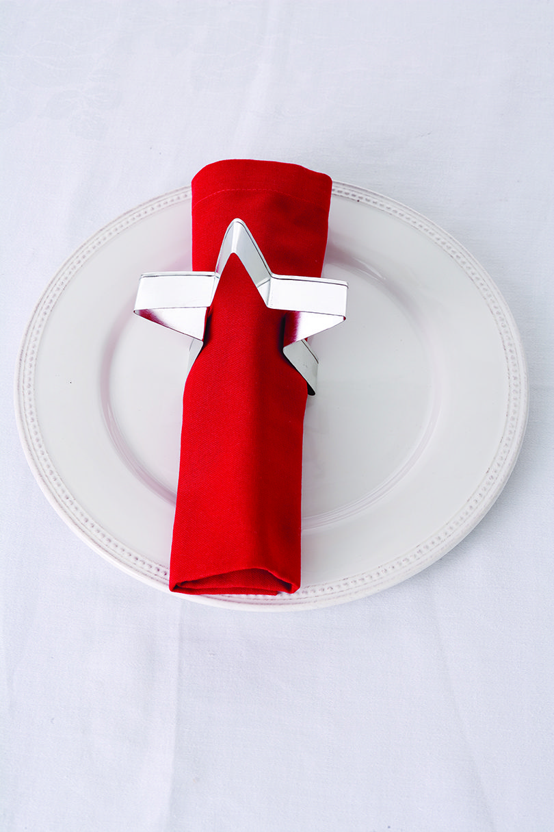 Use a cookie cutter as a shapely ring around a rolled napkin.