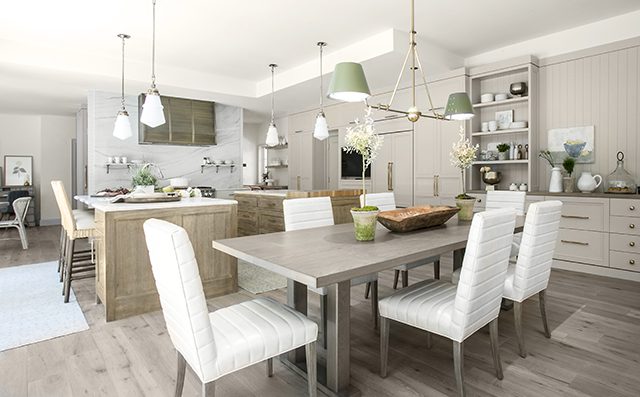 “The original floor plan was very traditional in nature with many smaller, broken-up spaces,” recalls Jeremy Jackson, principal of Jackson & LeRoy. The original main-floor spaces prove his point. In the remodel, the team opened the main-level spaces, allowing the living, dining, kitchen and keeping room areas to flow freely into each other. “We needed to create a family communal environment,” explains Barton, who created a dreamy kitchen to anchor the open spaces.