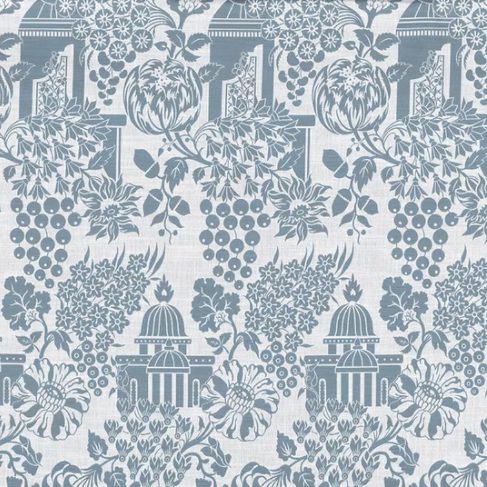 Pool house fabrics and wallpapers (clockwise from top left): Ferns by GP&J Baker, Seacliffe Print by Lee Jofa, Ridley by Carlton V Ltd., Eastern Eden by Perennials.