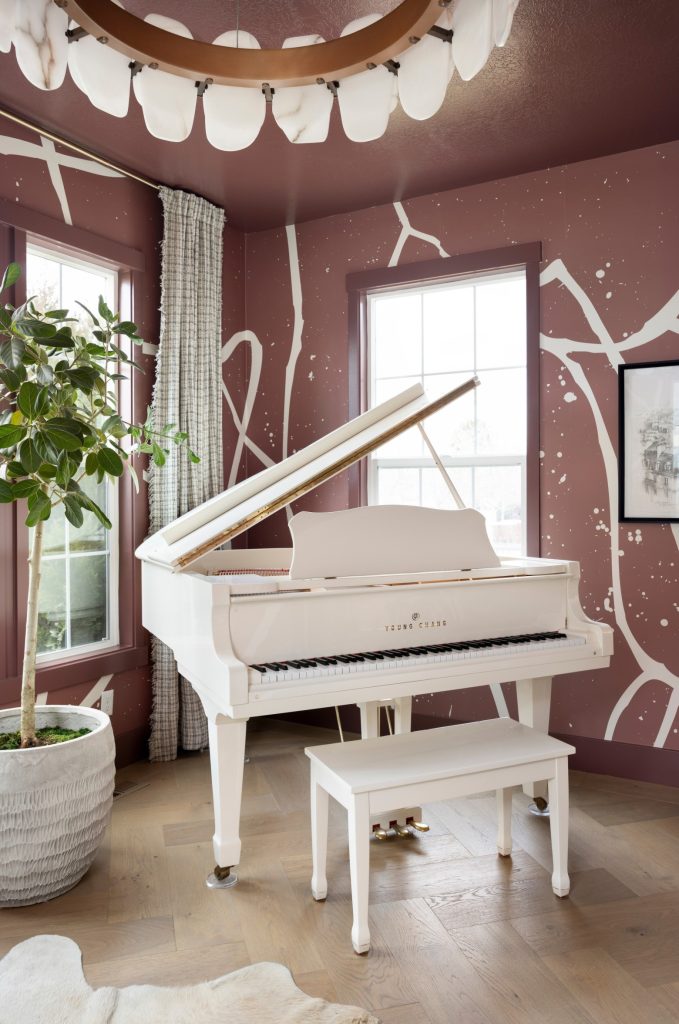 “We are currently loving the ‘color drenching’ trend. For a recent home office and music room project, we customized the wallpaper that wrapped all the walls in a gorgeous burgundy red. We then painted the ceiling and trim in a slightly darker shade. The resulting space felt intentional and timeless, although completely drenched in color.” —ANDREA WEST, ANDREA WEST DESIGN