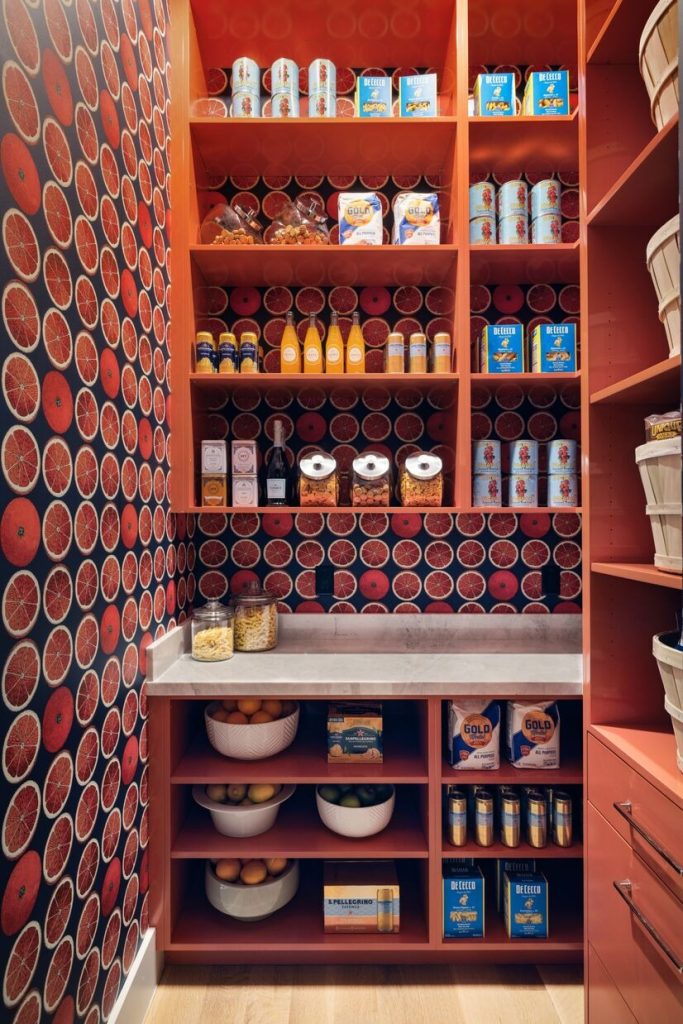 “By embracing unexpected hues, utilitarian spaces—including pantries, laundry rooms and even closets—can shift from purely practical to powerfully memorable. Here, a bold, juicy wash of color and pattern transforms this pantry into an immersive design moment.” —KRISTIN ROCKE, K. ROCKE DESIGN