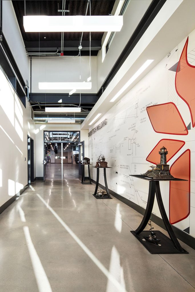 This is the hallway leading from the entrance to the hands-on working space. The pieces on display are welded student creations that have been awarded prizes in competitions. Pretty amazing!