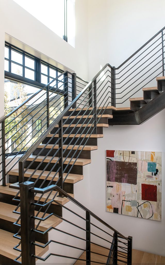 Even the home’s multi-level steel stairwell, crafted by Lightning Forge in Murray,  is a perfect microcosm of the home’s architectural artistry.