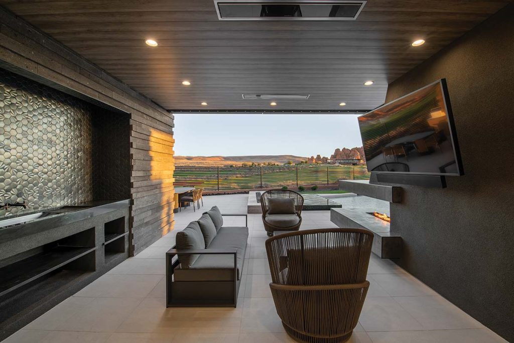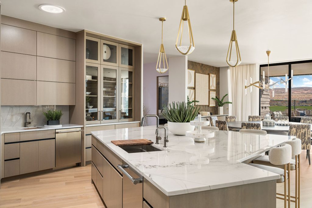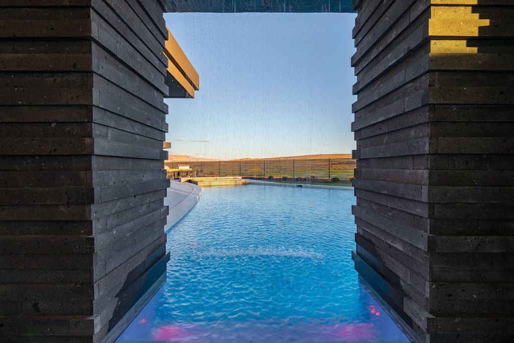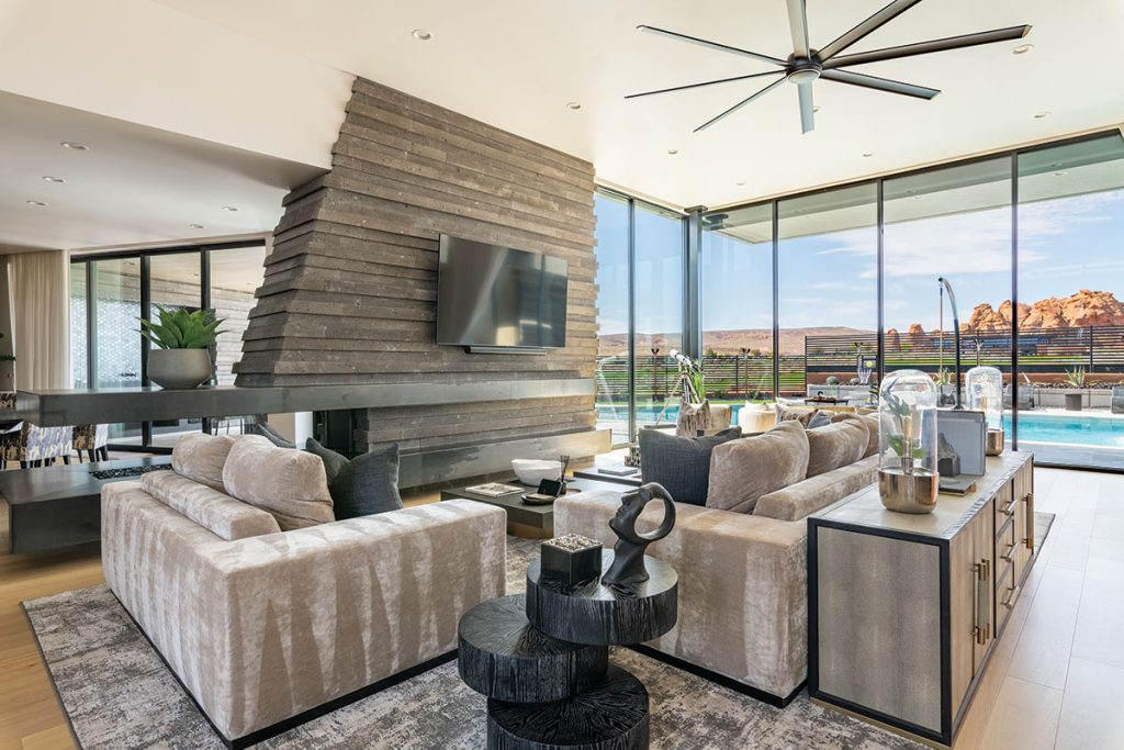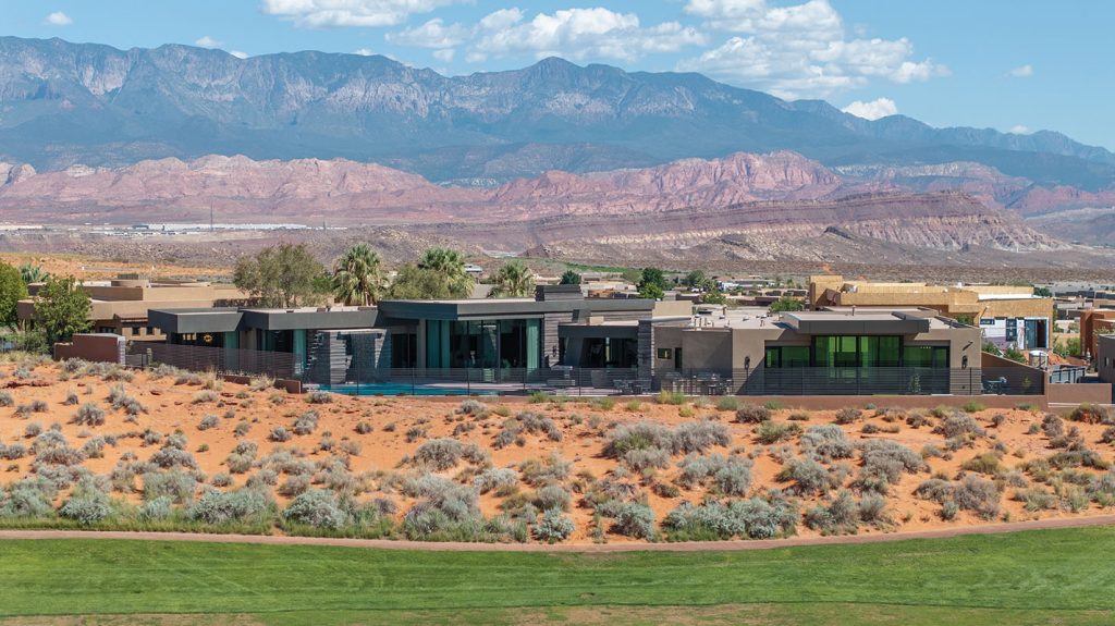 When a client starts with, “I want the best house in Sand Hollow,” you know the bar is set high. Luckily, this Hurricane-area property—perfectly tucked between two golf course fairways with the clubhouse perched on a gentle rise—was already making a strong case for greatness. Architect Rob McQuay saw it too: a rare opportunity to shape views so precisely that no neighboring home would interrupt the sightlines. “I saw great potential with the location and was eager to be part of the project,” he recalls.