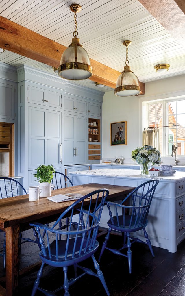 The interiors are cozy and timeless, with a cottage-like, Cotswolds-inspired aesthetic. “If we lived back in England, we would live in the Cotswolds,” Kim explains. To realize their vision, the couple worked with local interior designers Emily Hogg of Iris and Emily and Lauren Oviatt of Lauren Oviatt, Inc.